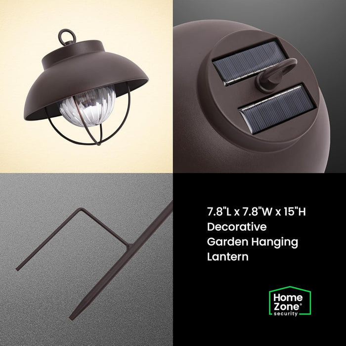 - FARMHOUSE CHARM FOR YOUR GARDEN – Enhance your outdoor décor with the Home Zone Security 2-Pack Farmhouse Style Hanging Lanterns, featuring a decorative bronze finish and rustic metal construction that adds warmth and elegance to any yard, pathway, or patio.